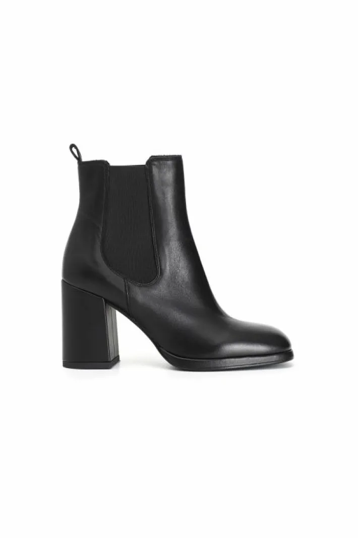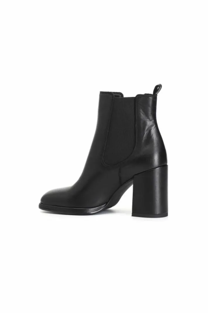 Tronchetto da donna in pelle. elastico da entrambi i lati per una calzata semplice. tacco squadrato da 85mm. soletto in pelle.