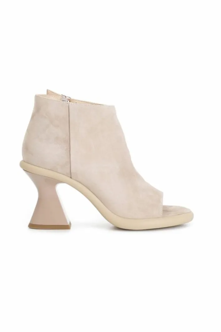 Tronchetti con plateau di 15mm in camoscio dalla forma asimmetrica. spuntati con apertura laterale che lascia scoperta l…