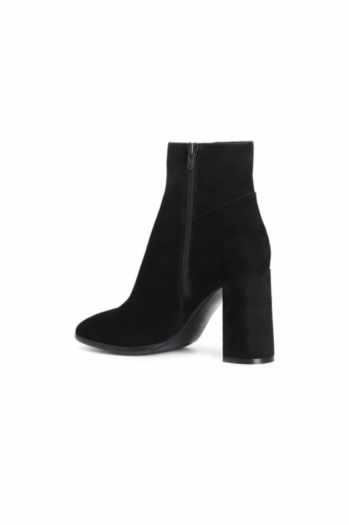 Tronchetto da donna in camoscio. cerniera nella parte interna. tacco squadrato 88 mm. il soletto è in pelle. calzatura molto versatile e chic per interpretare con stile i look da ufficio e per il tempo libero.