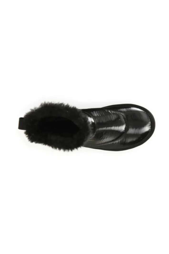Tronchetto in nylon impreziosito da un nastro con logo cafènoir fatto di strass la fodera è in pelliccia sintetica. pl…