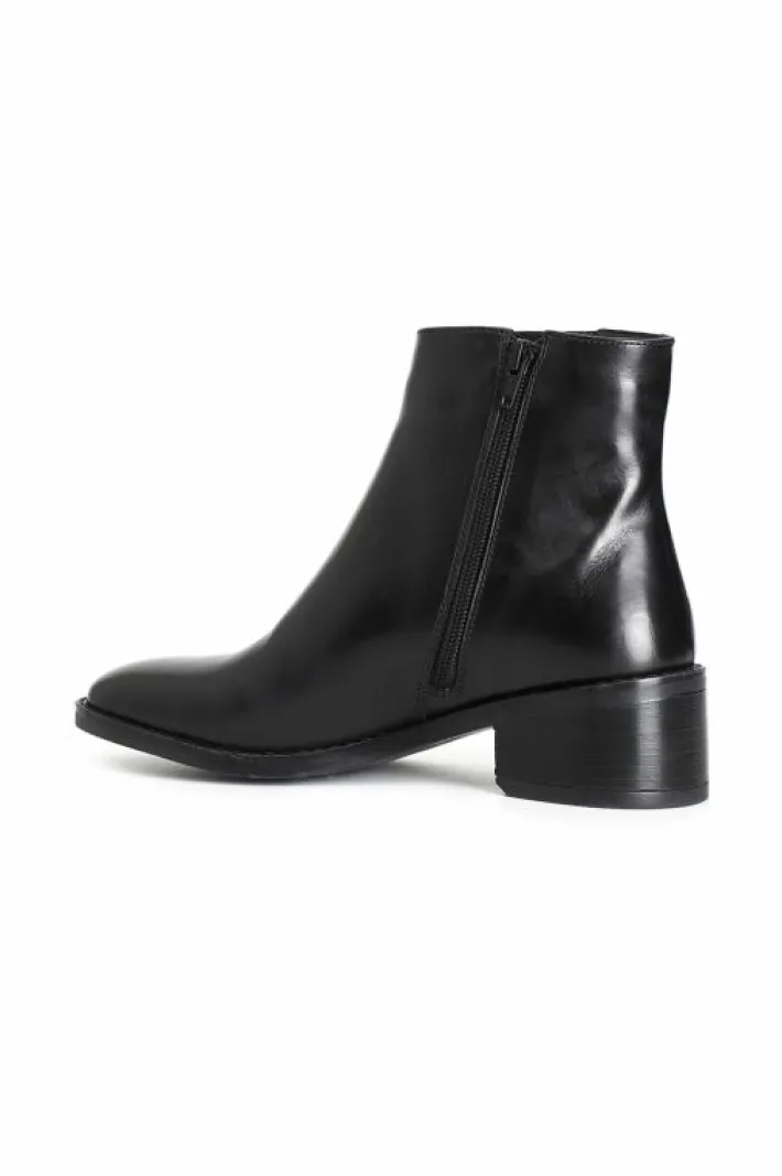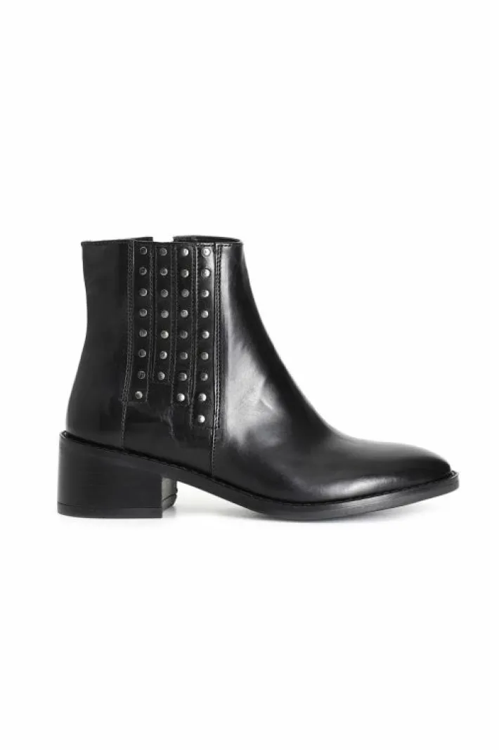 Tronchetto da donna in pelle con elastici arricchito da borchie. altezza tacco 50mm. il soletto è in pelle.