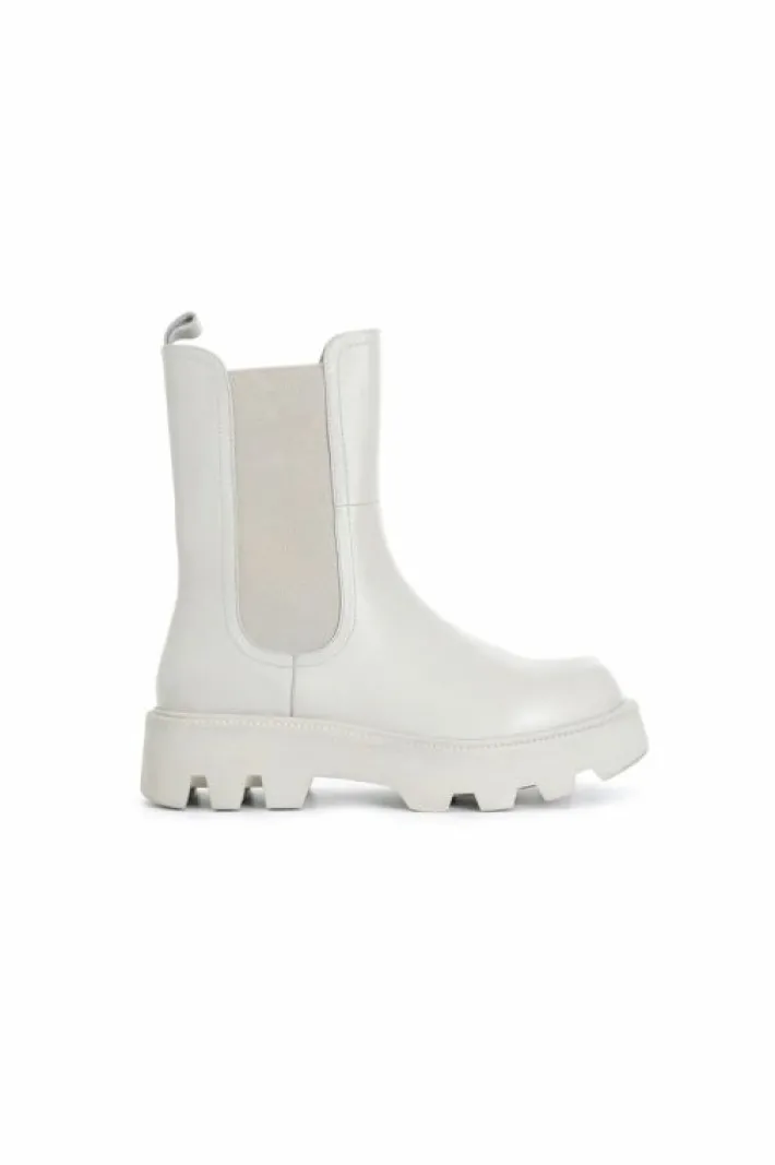 Tronchetto monocolore da donna in pelle con elastico laterale. soletto in pelle e suola carro armato.