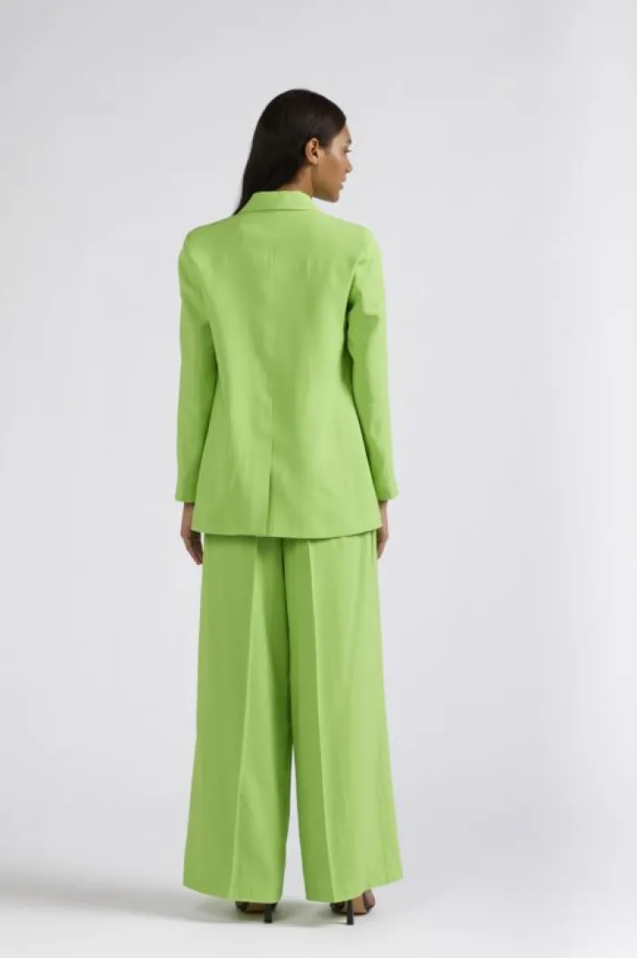 Blazer monopetto in tessuto misto viscosa e con bottone logato color oro chiaro. tasche a filetto con pattina. il collet…