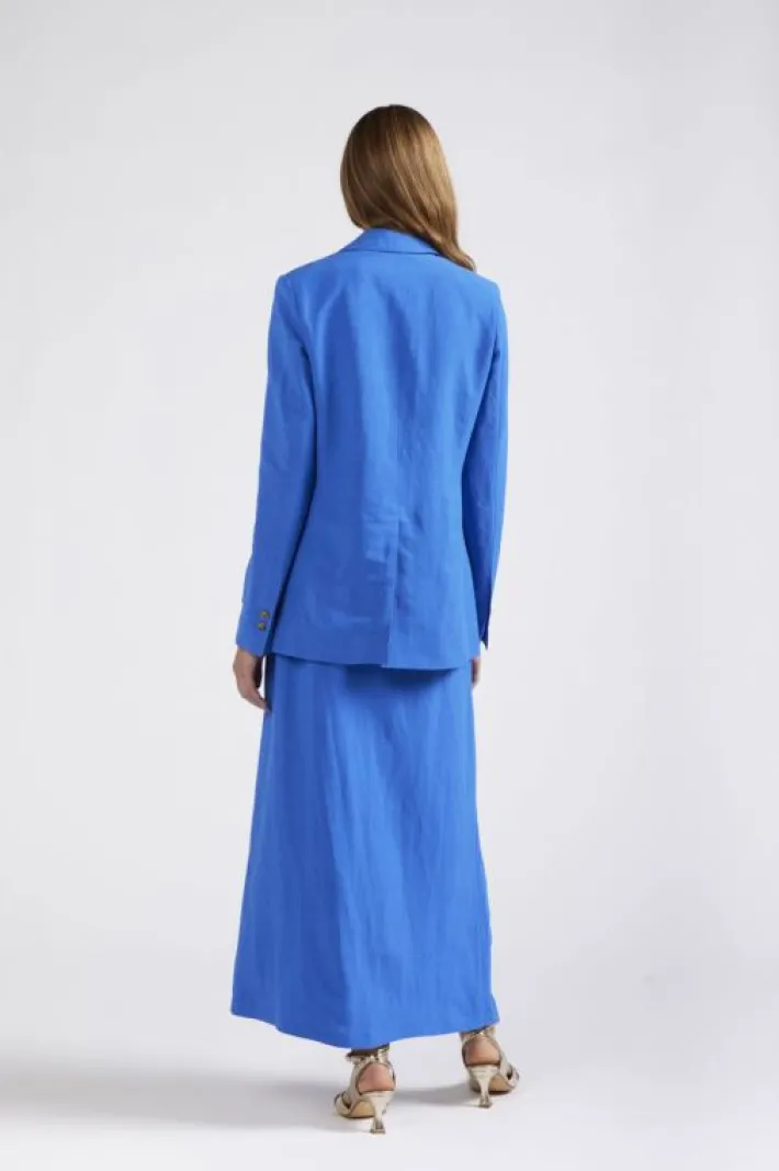 Giacca monopetto realizzata in un fresco tessuto misto lino. la giacca è impreziosita da un delicato accessorio removib…