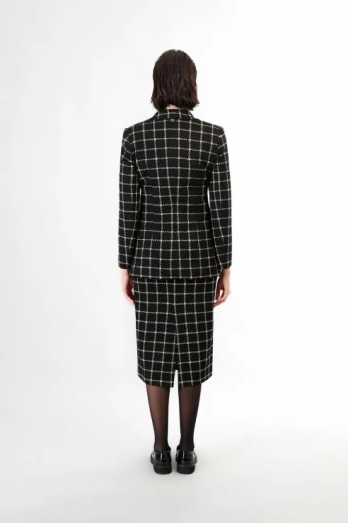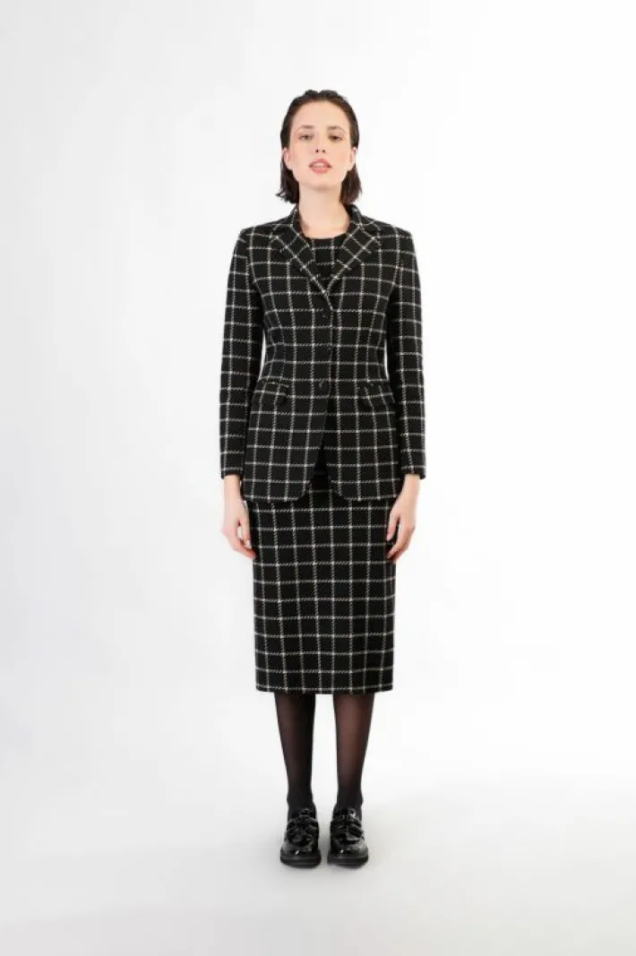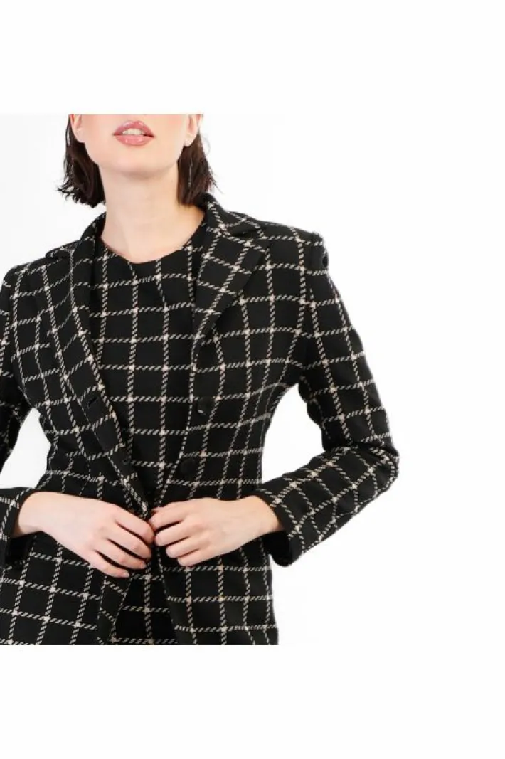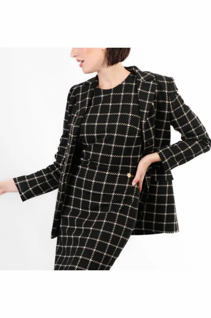 Giacca monopetto realizzata in tessuto jacquard a quadri. capo perfetto per le occasioni casual o formali. capo perfetto per le occasioni casual o formali.