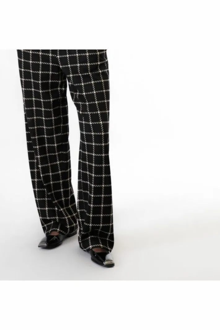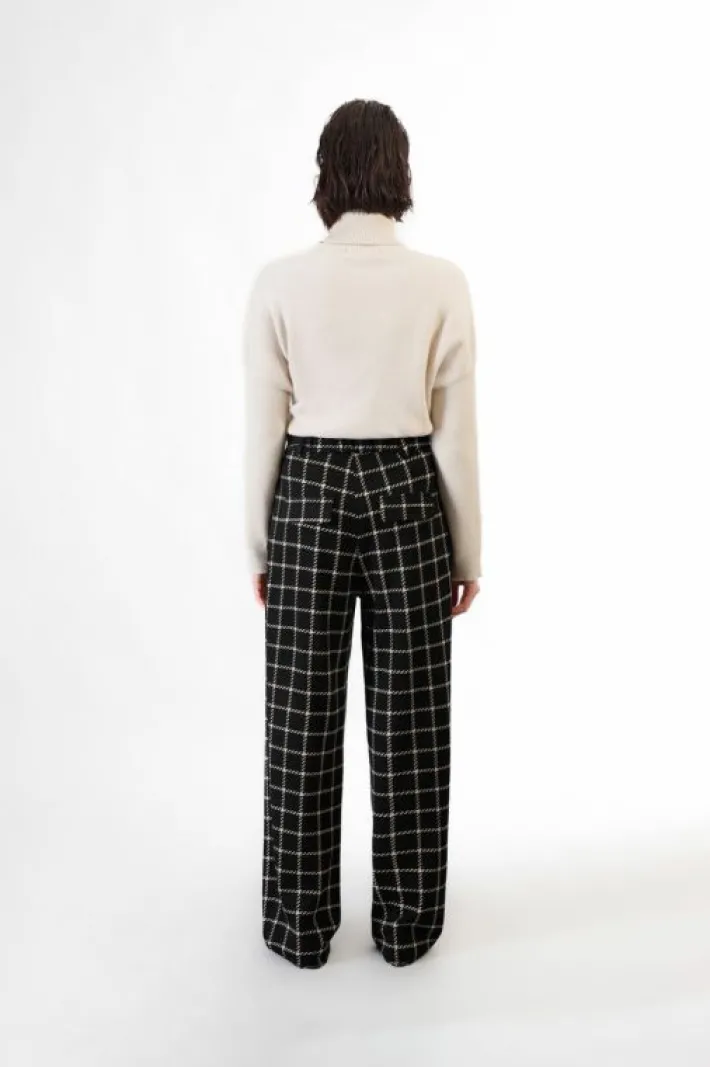 Pantaloni dalla vestibilità wide con pieghe davanti e vita posteriore elasticata. realizzati in tessuto jacquard a quadri. dallo stile sofistificato da abbinare alla giacca in coordinato.