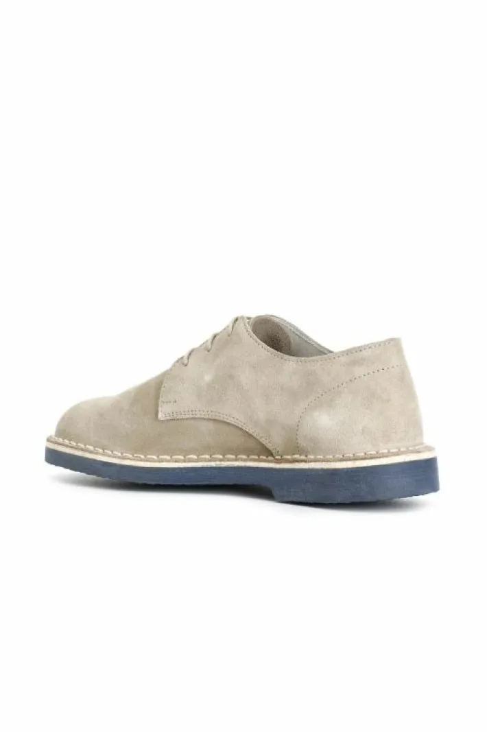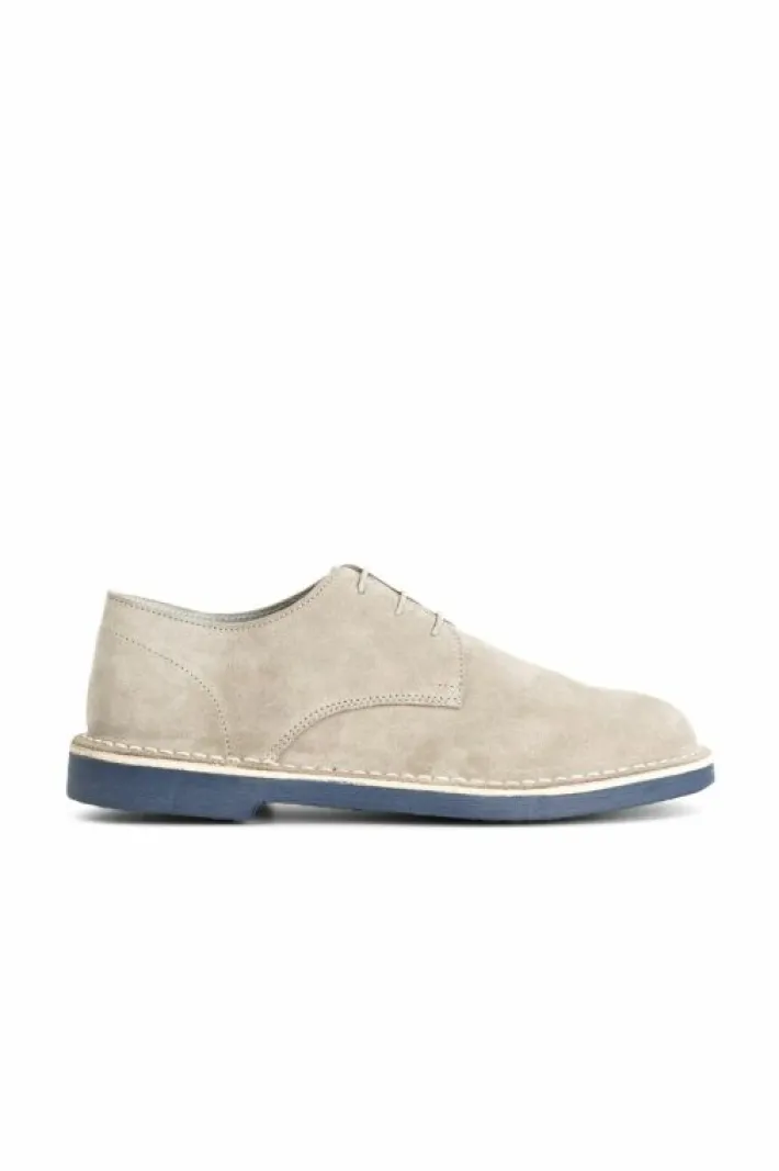 Derby uomo allacciata in pelle scamosciata. soletto in pelle.