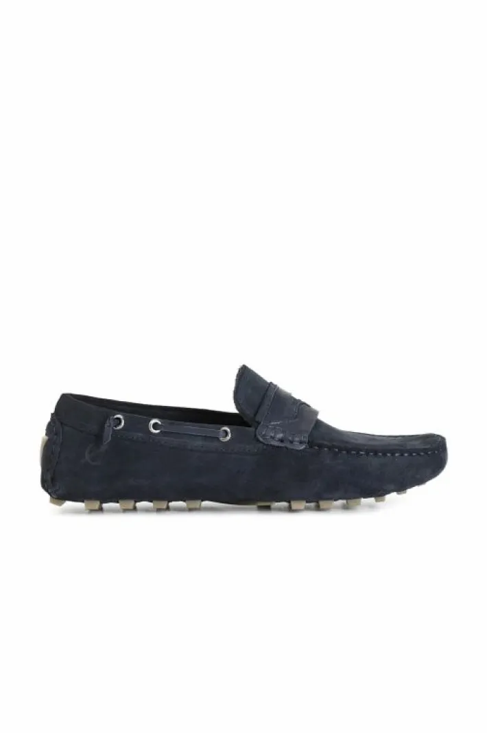 Mocassini uomo in pelle scamosciata con passante. suola con dots in gomma. calzatura leggera e versatile da abbinare a s…