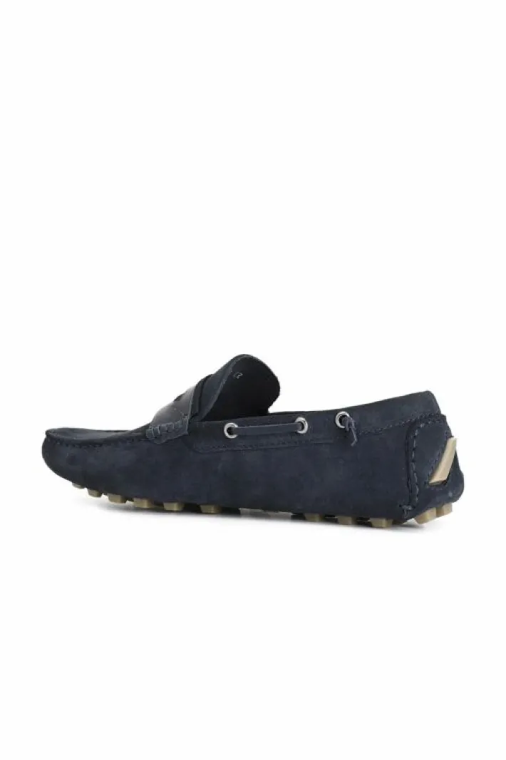 Mocassini uomo in pelle scamosciata con passante. suola con dots in gomma. calzatura leggera e versatile da abbinare a svariati look. assicura una calzata confortevole per tutto il giorno.