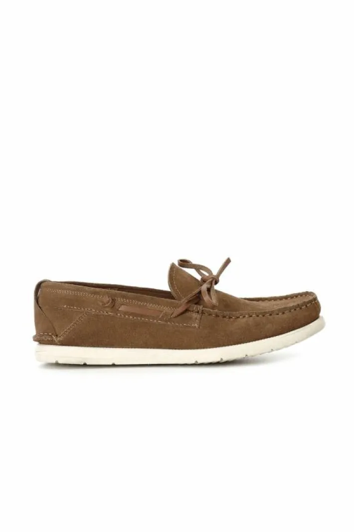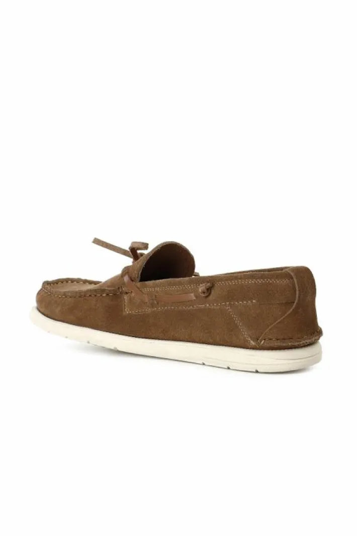 Mocassini uomo in pelle scamosciata con passanti e fiocco. soletto in pelle.