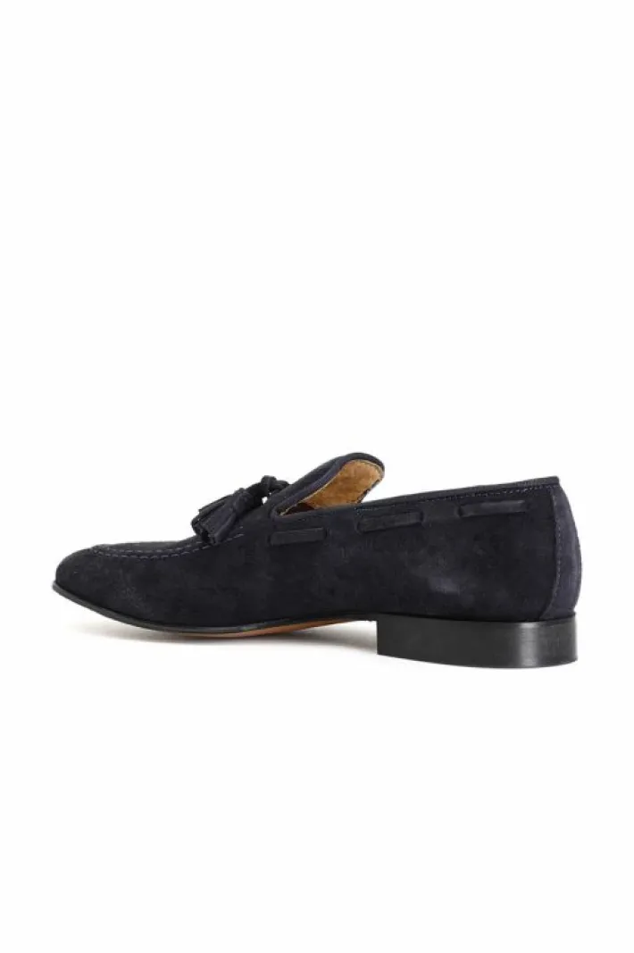 Mocassini uomo con nappine in pelle scamosciata. soletto in pelle. suola in cuoio.