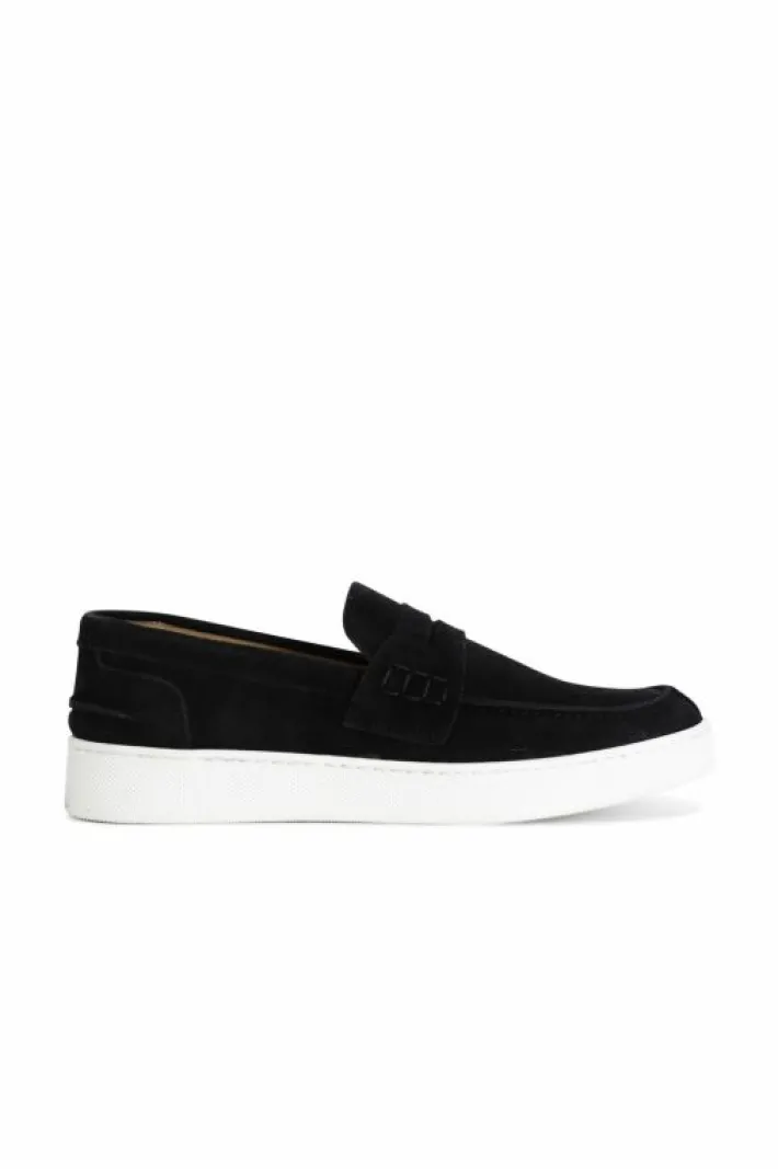Mocassini uomo in pelle scamosciata. soletto in pelle. suola a cassetta.