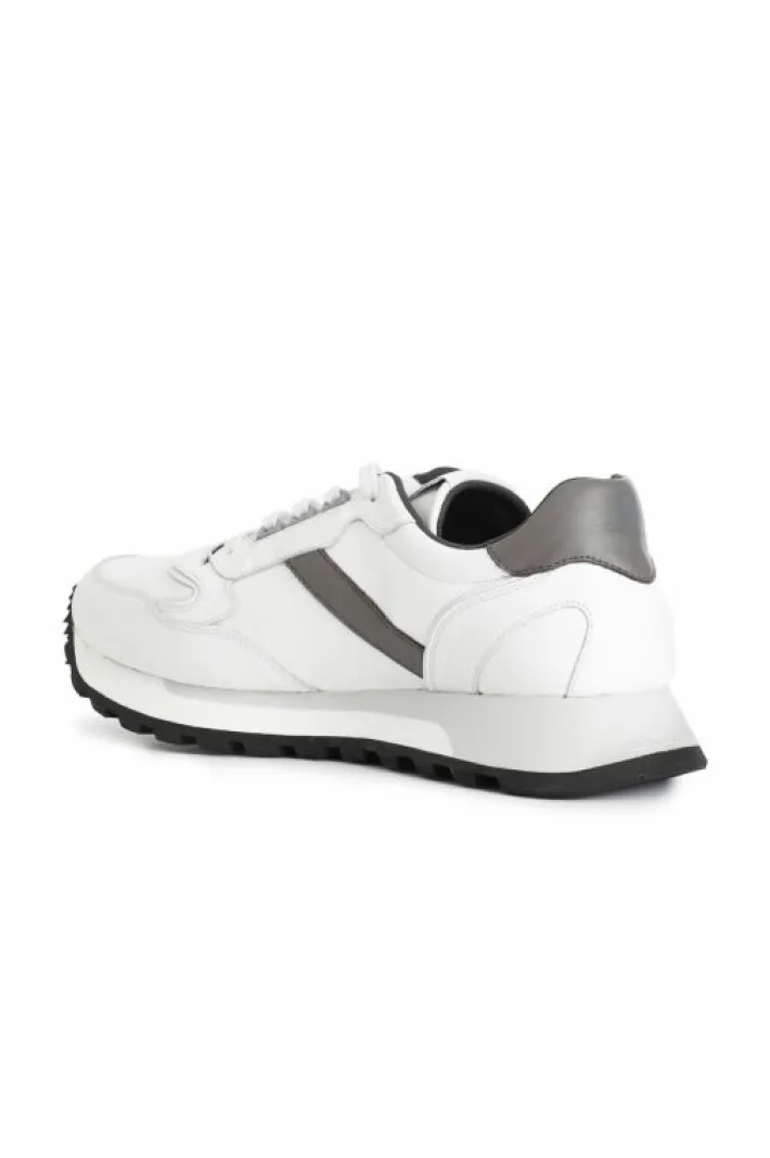 Sneakers da uomo allacciate in pelle rivestita. il soletto è in pelle. suola in gomma multicolor. questa calzatura garantisce comodità e sostegno durante la camminata il modello unisce con sobrietà comfort e stile.