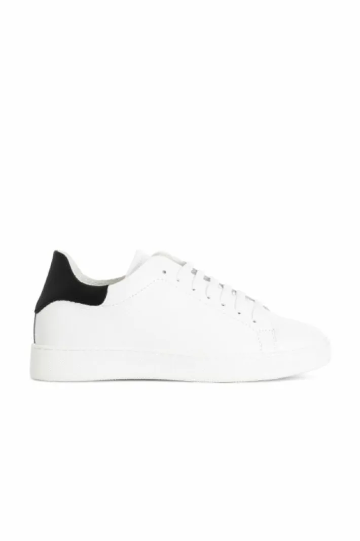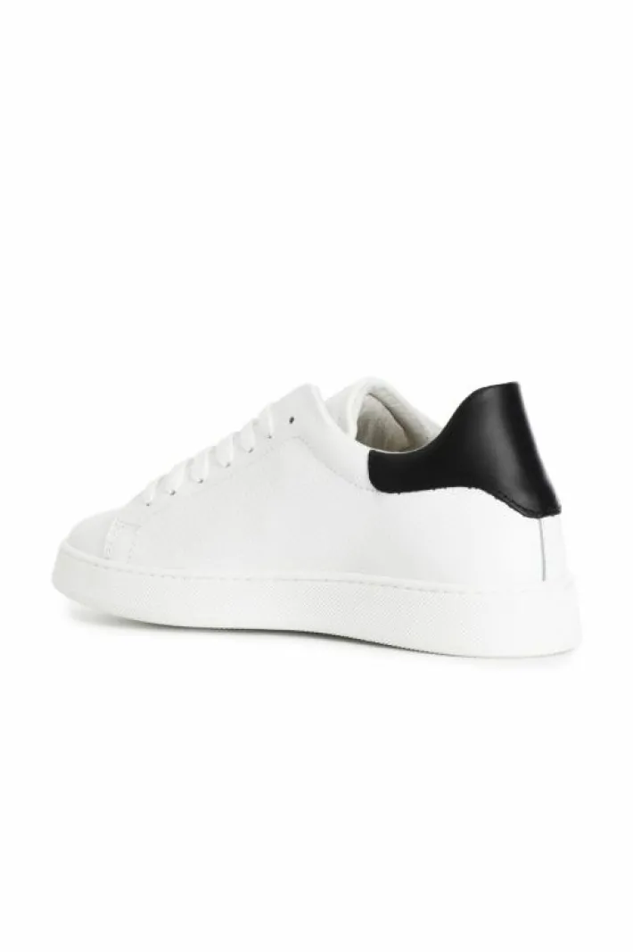 Sneakers uomo in pelle bianca con colletto colorato.
