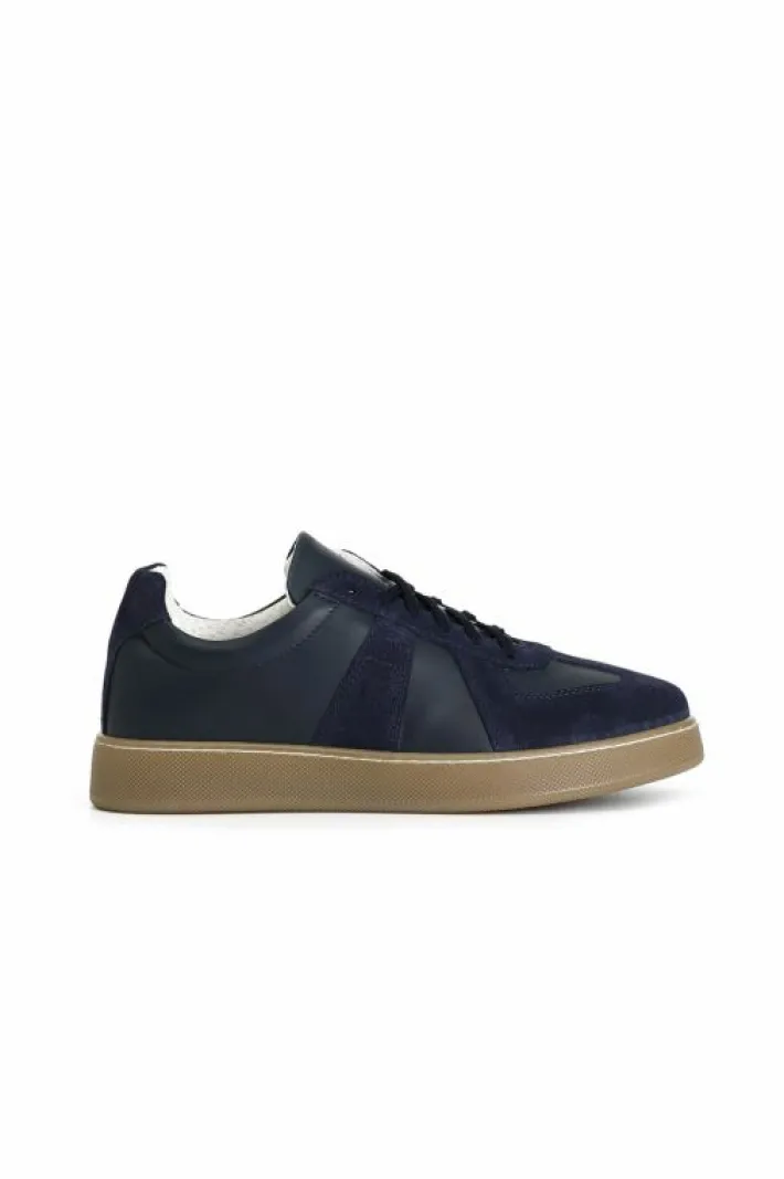 Sneakers allacciate uomo in pelle e scamosciato. soletto in pelle.